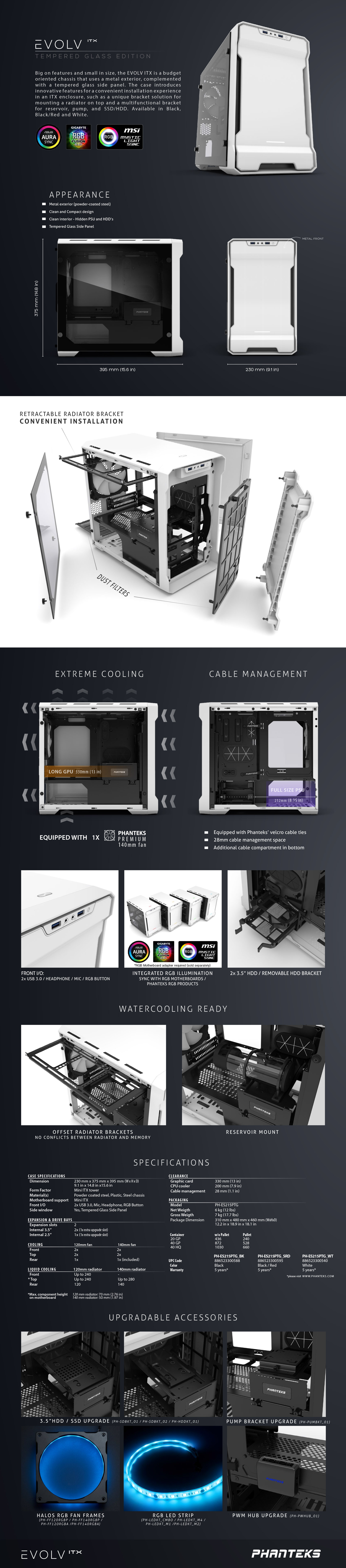 Features: Enthoo Evolv ITX includes 1 x 140mm exhaust fan the rear. Ability to upgrade to additional fans is possible. Appearance: Metal exterior Clean and Compact design Clean interior